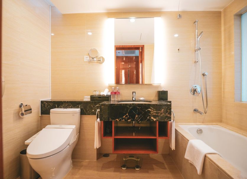 Hotel in Shanghai with 2 restaurants and airport shuttle service This hotel features 2 restaurants, a fitness center, and a bar/lounge. Free WiFi in public areas, free self parking, and a free airport shuttle are also provided. Other amenities include a coffee shop/cafe, 24-hour room service, and a business center. Housekeeping is available on request. Ramada Plaza Shanghai Pudong Airport offers 385 air-conditioned accommodations, which are accessible via exterior corridors and feature minibars and safes. Refrigerators and coffee/tea makers are provided. Bathrooms include bathrobes, complimentary toiletries, and hair dryers. This Shanghai hotel provides complimentary wired and wireless Internet access. Satellite television is provided. Additionally, rooms include complimentary bottled water and irons/ironing boards. Change of towels and change of bedsheets can be requested. A nightly turndown service is provided and housekeeping is offered daily. Recreational amenities at the hotel include a fitness center. The recreational activities listed below are available either on site or nearby; fees may apply.