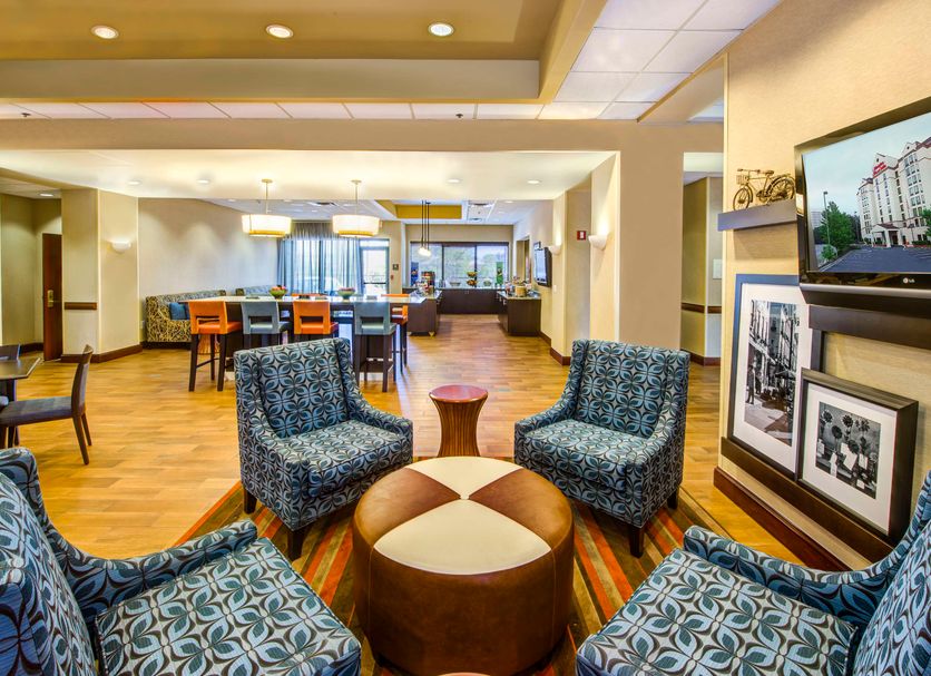 Daily Mandatory Charge includes: Cobb County Sports & Tourism Fee. Welcome to the Hampton Inn & Suites Atlanta-Galleria hotel, conveniently located off I-75 and I-285. Our hotel is within walking distance to Truist Park, The Battery Atlanta, Coca-Cola Roxy Theater, and iFLY – Indoor Sky Diving. The Cobb-Galleria Convention Center and Cumberland Mall are three blocks away. We’re also just 12-miles from the Georgia Aquarium, Georgia World Congress Center, Six Flags Over Georgia and the Georgia Dome. Flying in? Hartsfield-Jackson Atlanta International Airport is just 25-minutes away. At the Hampton Inn & Suites Atlanta-Galleria you're also close to many other attractions including the Cobb Energy Performing Arts Center, The Martin Luther King Jr. Center for Nonviolent Social Change, the Atlanta History Center, the Atlanta International Museum of Art and Design, the Jimmy Carter Library and Museum and much more. Refresh in our indoor pool or relax in one of our 106 guest rooms featuring king-sized or queen-sized beds. Our King study guest room, as well as our two Queen guest room, features a mini-refrigerator, microwave, coffee maker and work space. Need more room? Upgrade to a 2-room King or 2-room double Queen Suite, featuring a separate living area and bedroom area, each with their own televisions. Take advantage of the full-sized refrigerator and kitchenette. Connect to complimentary WiFi to keep in touch throughout your stay while enjoying our 41-inch televisions. Get to work at the desk, relax or drift off to sleep on the clean and fresh Hampton bed. Then join us in the morning for our free daily hot breakfast. If you plan on dining out in the evening, choose from over 40 causal and fine dining restaurants all only minutes away. Whether you’re planning a corporate meeting, a family trip, coming to see a Major League game or your child’s sporting event, we’re delighted to offer you a broad range of services and amenities to make your Atlanta stay exceptional!