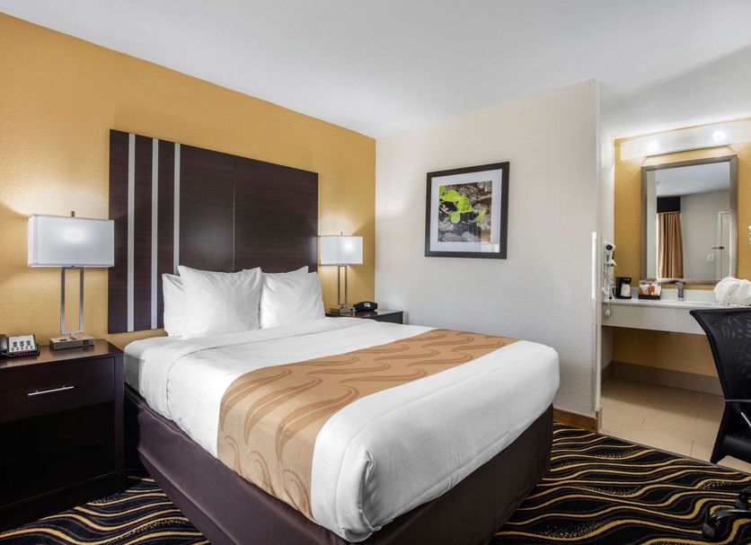 Hotel with free breakfast, in the vicinity of Dickies Arena Coffee/tea in a common area, a seasonal outdoor pool, and a business center are available at this hotel. Free continental breakfast, free WiFi in public areas, and free self parking are also provided. Other amenities include laundry facilities, a 24-hour front desk, and RV/bus/truck parking. Quality Inn West Fort Worth offers 105 air-conditioned accommodations, which are accessible via exterior corridors and feature coffee/tea makers and hair dryers. 32-inch flat-screen televisions come with premium cable channels. Refrigerators and microwaves are provided. Bathrooms include shower/tub combinations and complimentary toiletries. This Fort Worth hotel provides complimentary wireless Internet access. Business-friendly amenities include desks and desk chairs, as well as phones; free local calls are provided (restrictions may apply). Additionally, rooms include irons/ironing boards and blackout drapes/curtains. Housekeeping is provided daily. Recreational amenities at the hotel include a seasonal outdoor pool. Children under 15 years old are not allowed in the swimming pool without adult supervision.